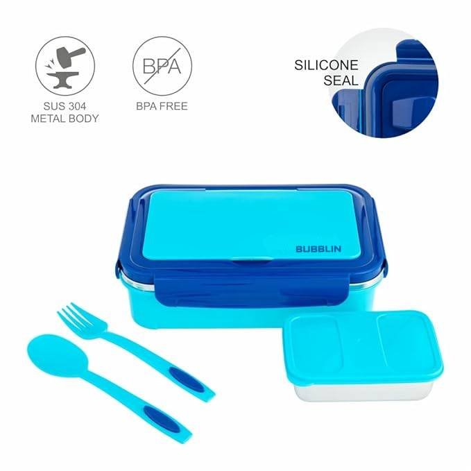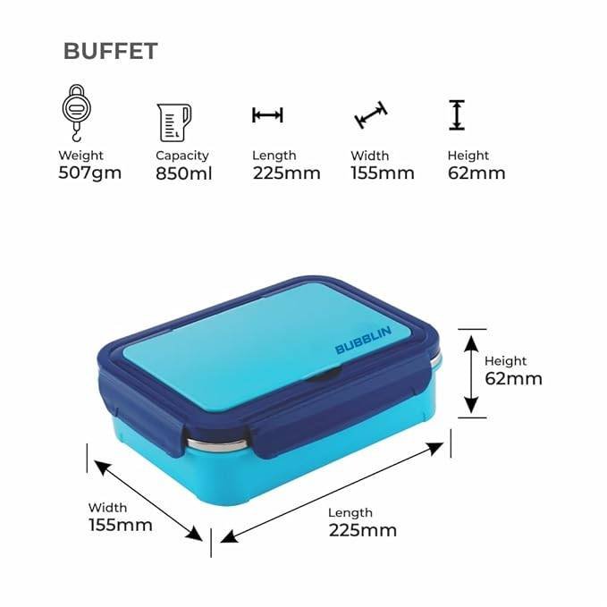 Buffet Stainless Steel Lunch Box Insulated Airtight Spill Proof (Blue)