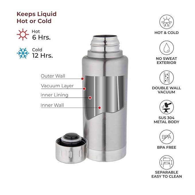 • ⭐Double Wall Vacuum Insulated Water Bottle Capacity -350 ML, Inner and Outer side of Bottle is Made from 304 Grade Steel Which is Rust Free and 100% Food Grade.