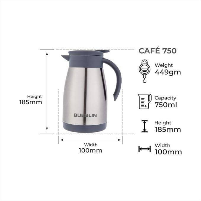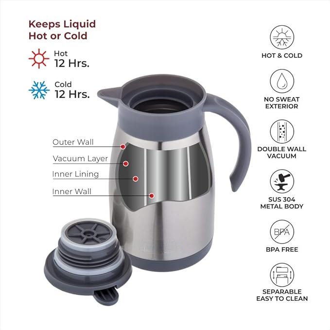 - Double Wall Vacuum Insulated Water Kettle Capacity – 750 ML, Inner and Outer side of Kettle is Made from 304 Grade Steel Which is Rust Free and 100% Food Grade.