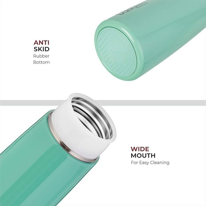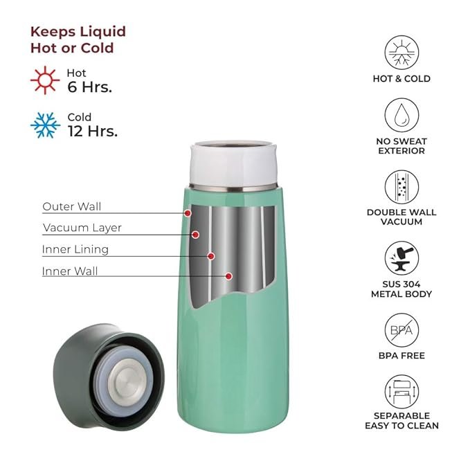 - ⭐Double Wall Vacuum Insulated Water Bottle Capacity -370 ML, Inner and Outer side of Bottle is Made from 304 Grade Steel Which is Rust Free and 100% Food Grade.
