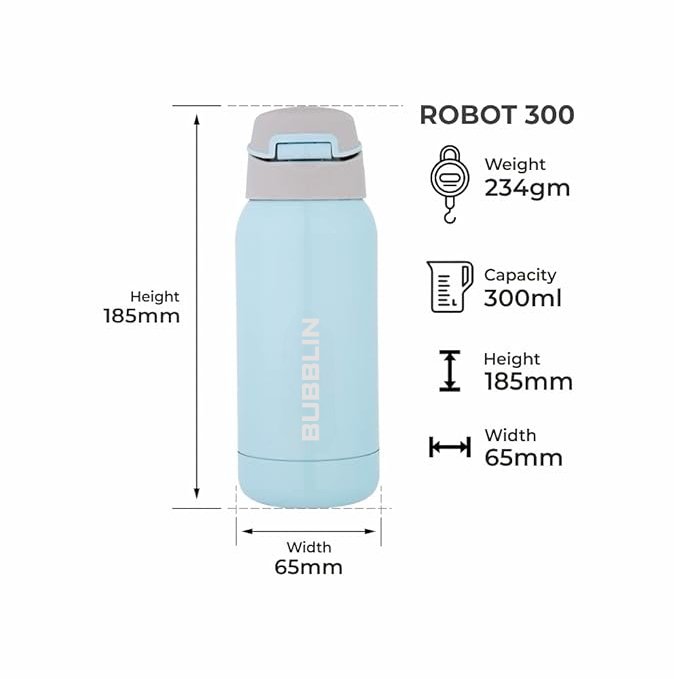 Bubblin water bottle is made from 18/8 stainless steel. This insulated double walled vacuum water bottle is designed for maximum temperature retention that keeps your favourite drinks hot/cold without altering their temperatures for a prolonged period of time. It will keep your drinks just the way you need them. The taste and nutritive value of the drinks remains intact for a long time making the bottles very appropriate choice for storing beverages. This bottle is 304 grade stainless steel vacuum bottle which is rust free and its plastic Lid is made of food grade material and is BPA free. The stylish exterior and color combination makes this bottle a must have.