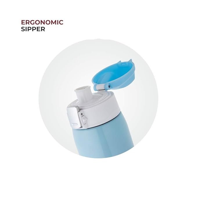 Bubblin water bottle is made from 18/8 stainless steel. This insulated double walled vacuum water bottle is designed for maximum temperature retention that keeps your favourite drinks hot/cold without altering their temperatures for a prolonged period of time. It will keep your drinks just the way you need them. The taste and nutritive value of the drinks remains intact for a long time making the bottles very appropriate choice for storing beverages. This bottle is 304 grade stainless steel vacuum bottle which is rust free and its plastic Lid is made of food grade material and is BPA free. The stylish exterior and color combination makes this bottle a must have.