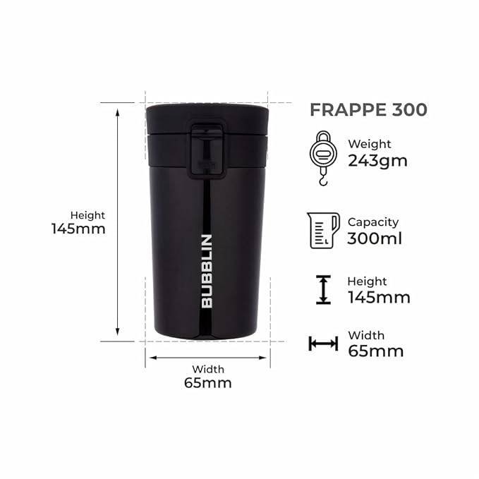 Bubblin Frappe Mug is made from 304 stainless steel. This insulated double-walled vacuum mug is designed for maximum temperature retention that keeps your favorite drinks hot/cold without altering their temperatures for a prolonged period of time. It will keep your drinks just the way you need them .It is designed to fit in the cupholder of most cars. The leak proof lid has a tight seal to keep the beverages secure, and operates with a simple touch. The taste and nutritive value of the drinks remain intact for a long time making the mug a very appropriate choice for storing/ Carrying beverages. Mug is 304-grade stainless steel vacuum that is rust-free and its plastic Lid is made of food-grade material and is BPA free. Bubblin as a Brand in the industry has flourished as a manufacturer of household products. Over the years since its inception in 2008, the company has focused its activities on the manufacturing of household goods and has entered the market with a range of world-class products that includes Stainless Steel Vacuum kettles, Sport kettles, Flasks, Sippers, Food containers, Lunch Boxes, Double Wall Mugs, Coffee Mugs, Steel Fridge kettles, Borosilicate Glass kettles and many more products. With its motto “Survival by Quality and Development by innovation” company served to anticipate and provide consumers with high eminence and resilient products that can enhance individuals day to day life.