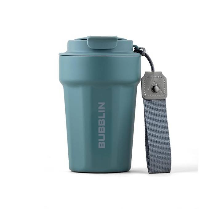 - Dubblin Swing Stainless Steel Tea & Coffee Mug | Double Wall Vacuum Insulated Travel Mug with Strap & Leak-Proof Lid | Wide Mouth Tumbler Thermos Flask- Keeps Hot 6 Hrs & Cold 12 Hrs, 500ML